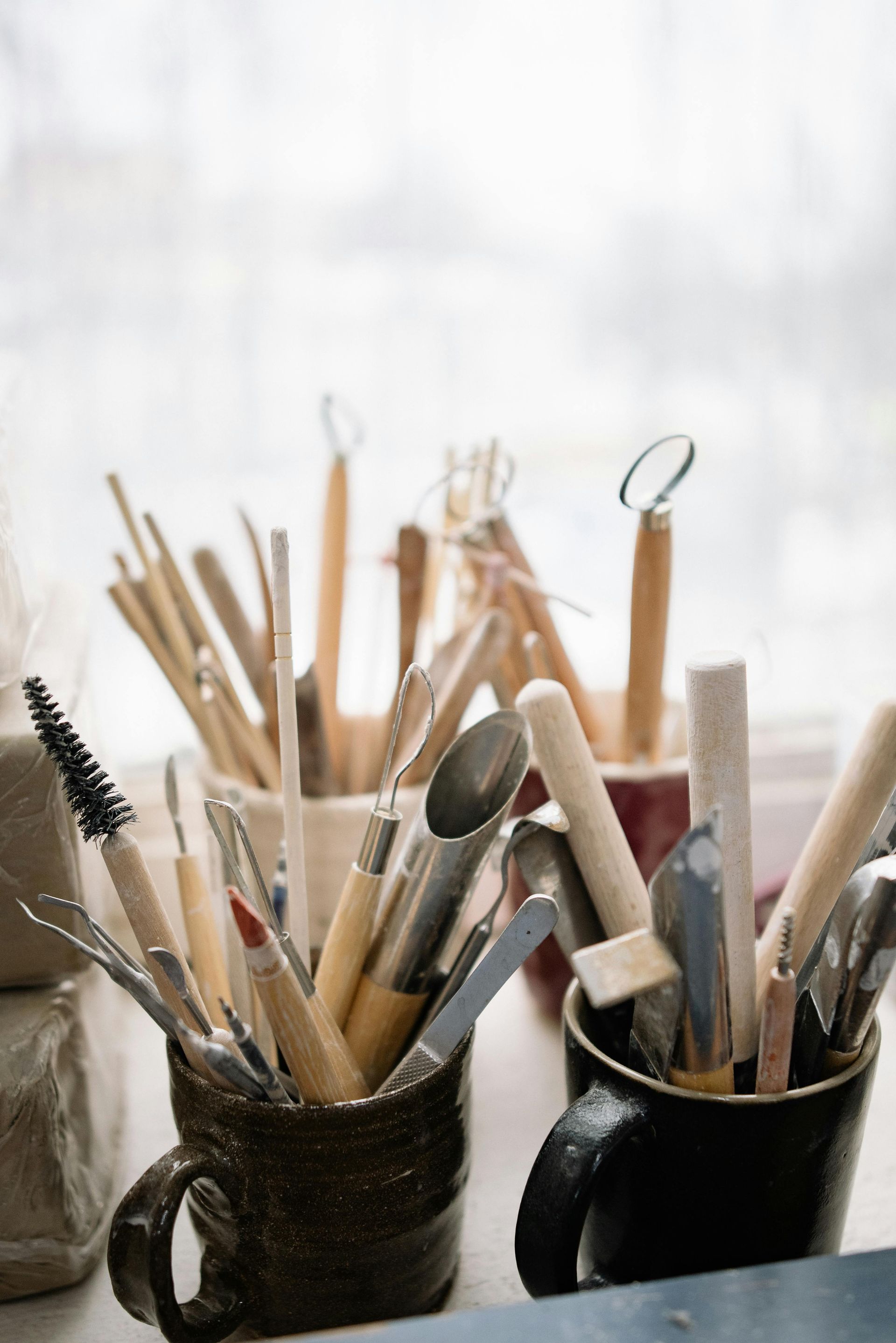 Materials and tools provided for sculpture, wheel-throwing, or mixed-media ceramics